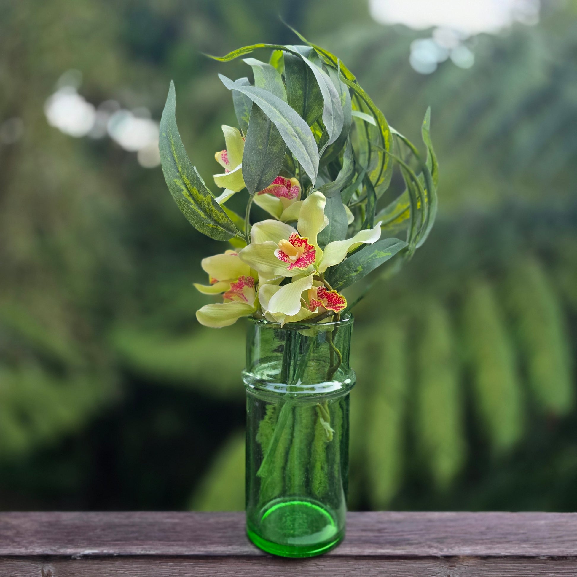Made in the very last hand-blown glass factory in Morocco from recycled glass.