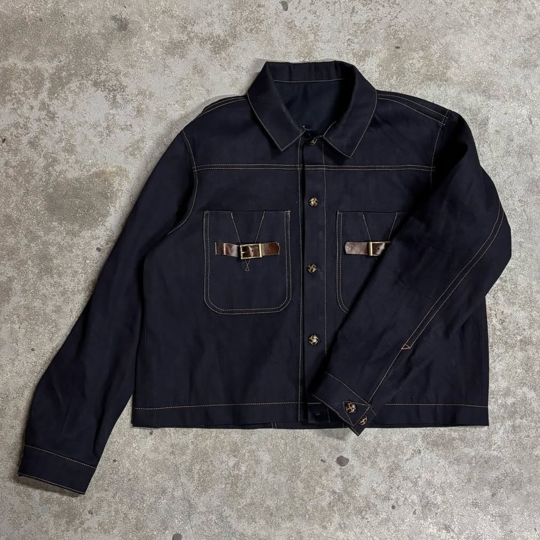 Black Denim Jacket featuring leather straps