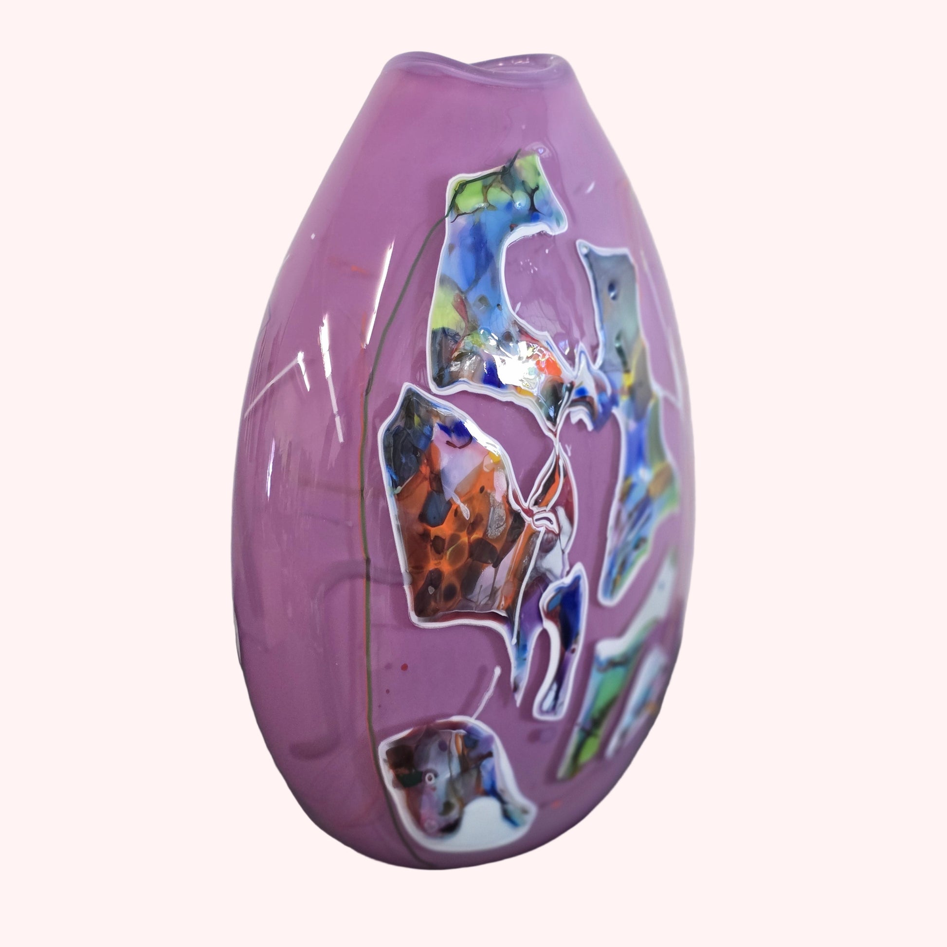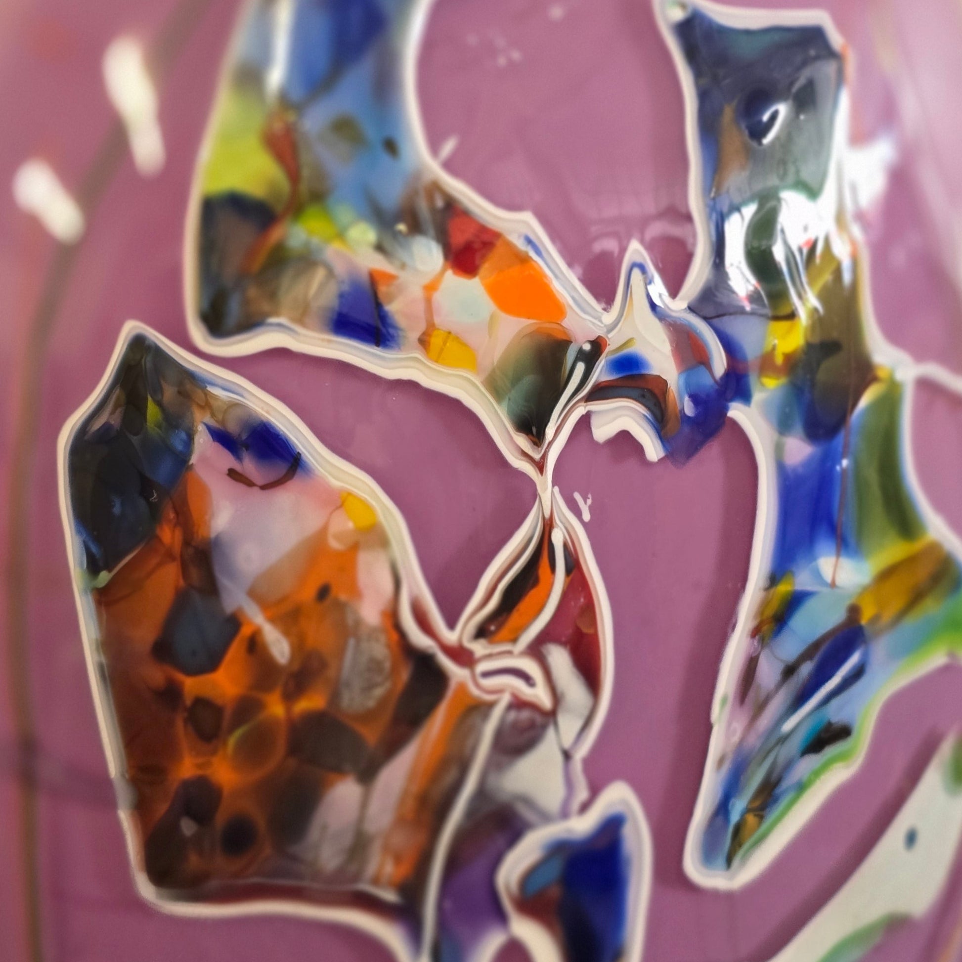 Keith runs the Grinter Glass studio in Whangarei, where his focus is on developing his glass blowing skills, particularly the shard pick-up technique.