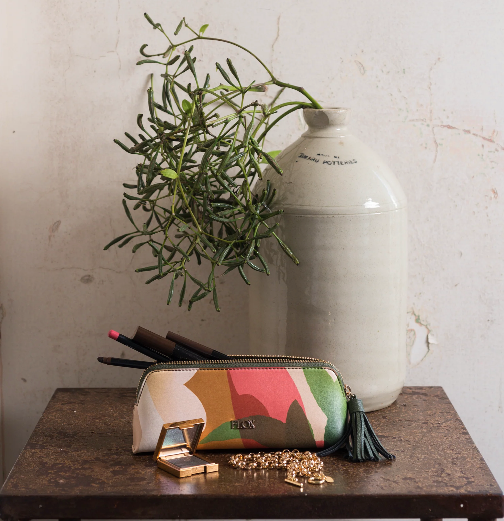 Adorned with a natural palette inspired by the hues and landscapes of Aotearoa, the Whenua Cosmetic Case Small adds a touch of elegance to your daily routine. Featuring a charming tassel on the zip, this case ensures your essentials are effortlessly accessible. Designed for everyday use, its compact size fits seamlessly into your handbag, ensuring your must-have beauty items are always within reach, wherever your day takes you.